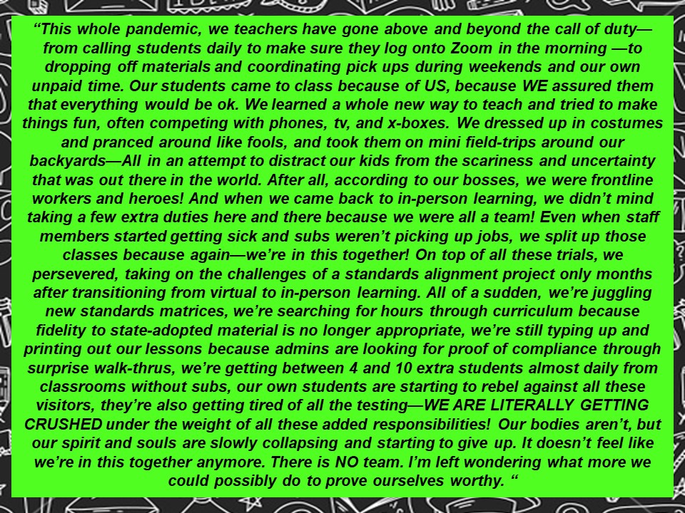 I am doubtful you have, because anyone familiar with our schools and our students would know that our teachers are incredible and that there are amazing things happening on our campuses every day. From our elementary schools to our high schools, there is a lot happening to support the diverse array of needs of our students and to prepare them for life post-graduation.