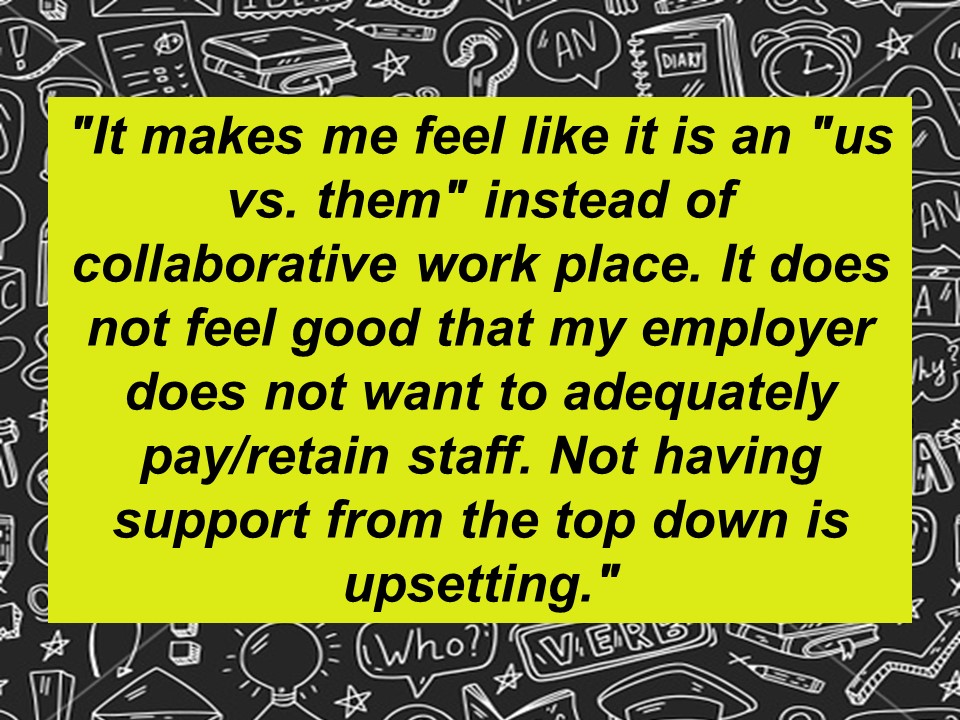 In the survey responses, our membership made it loud and clear that an on-schedule offer that did not match, or at the very least come close to, what the District is providing CSEA with is unacceptable. With that in mind, we ended the meeting with no agreement in place and will continue with the impasse process.